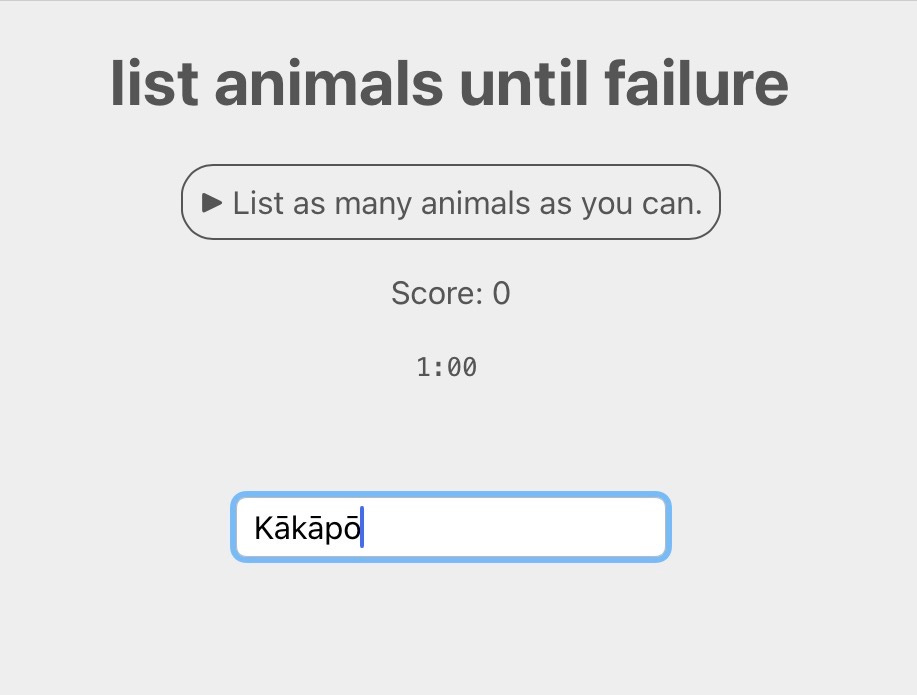 Pretty simple game, this. Just list all the animals. No cheating.